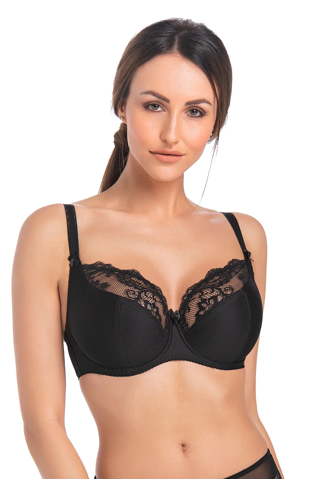τα σουτιέν έχουν κάτω καλώδια μέσα στα κύπελλα. Διατίθεται σε κάθετη και οριζόντια εκδοχή, ανασηκώνει τέλεια και διαμορφώνει το μπούστο. Το σουτιέν έχει ρυθμιζόμενες τιράντες με γραφικές λεπτομέρειες και κλείσιμο με γάντζο και μάτι δύο ή τριών επιπέδων. Το πλάτος των ιμάντων εξαρτάται από το μέγεθος του μπούστου. Το πάνω μισό του σουτιέν είναι διακοσμημένο με λεπτή ελαστική δαντέλα που εξασφαλίζει ακριβή εφαρμογή. Υπάρχει μια λεπτή ελαστική ταινία ραμμένη κάτω από τις κούπες μέσα στο σουτιέν.